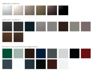 Die Aluminiumaußenseite ist in zahlreichen RAL-Farben und Dekaren erhältlich und passt sich jedem Stil und jeder Architektur an. Das Innenprofil aus Kunststoff ist in verschiedenen Farben und Oberflächenstrukturen verfügbar, die eine harmonische Verbindung von Funktion und Design ermöglichen.